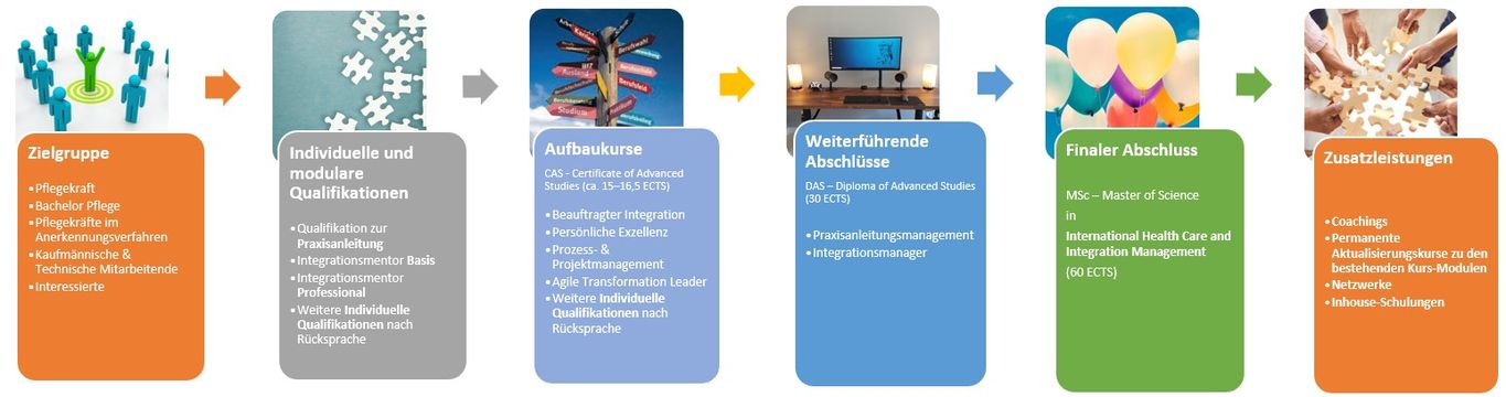 Der Master of Advanced Studies in International Health Care and Integration Management baut auf einem modularen Weiterbildungssystem nach dem Bologna-Prinzip auf.